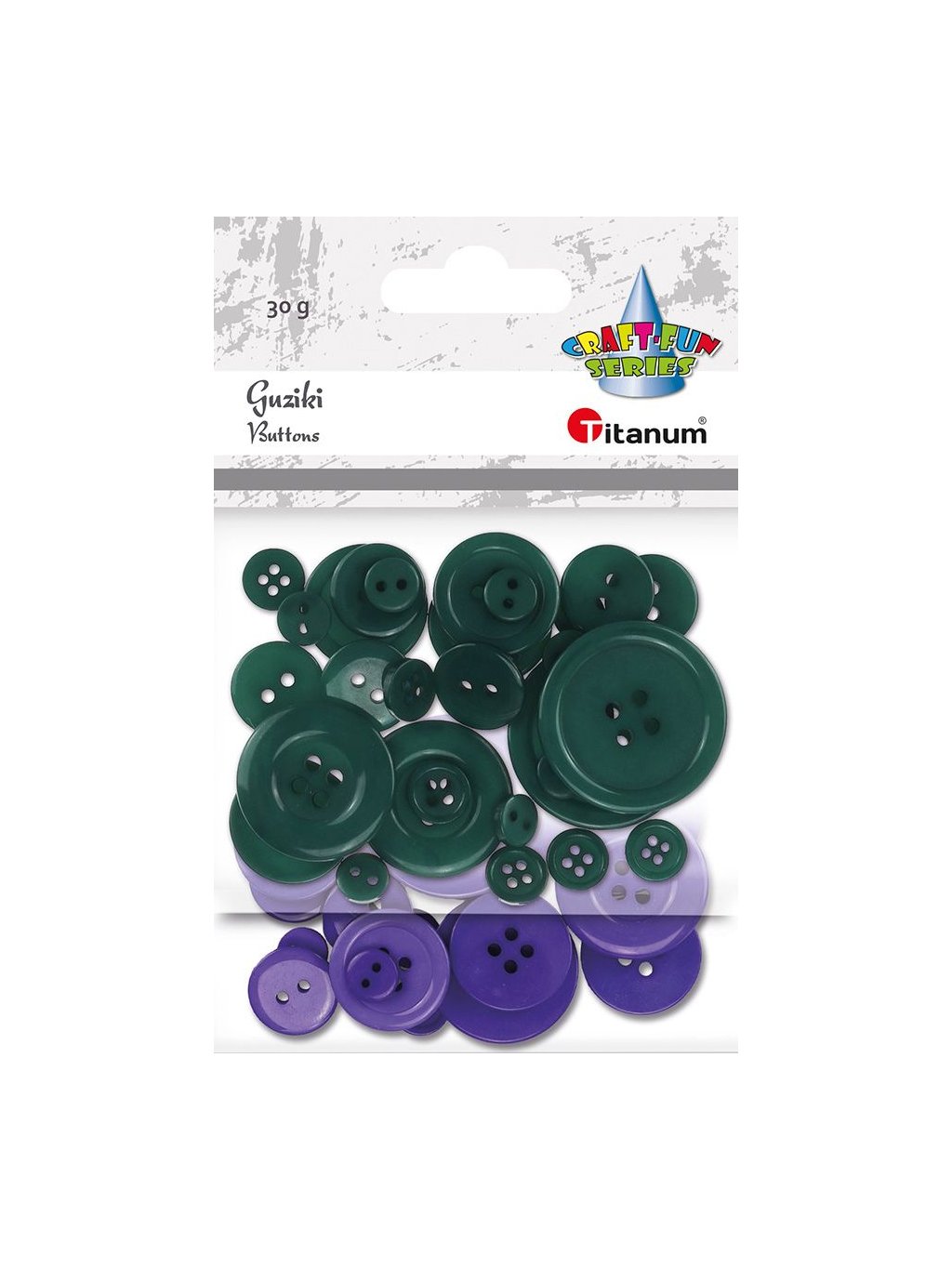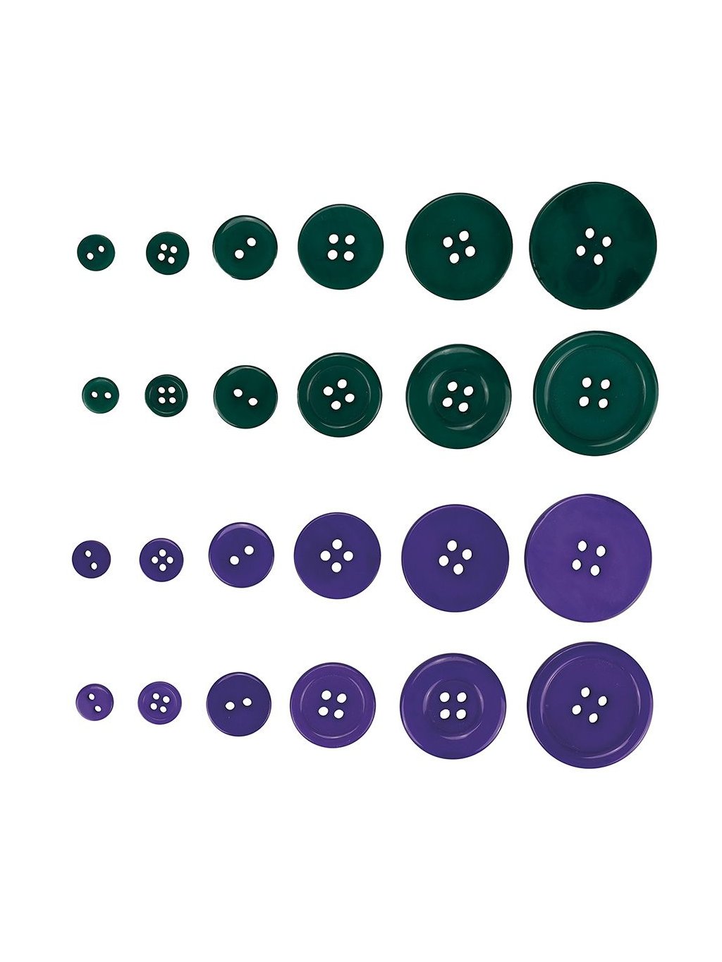 Knoflíky, plastové, MIX ZELENÉ, FIALOVÉ, 0,8-3 cm, balení