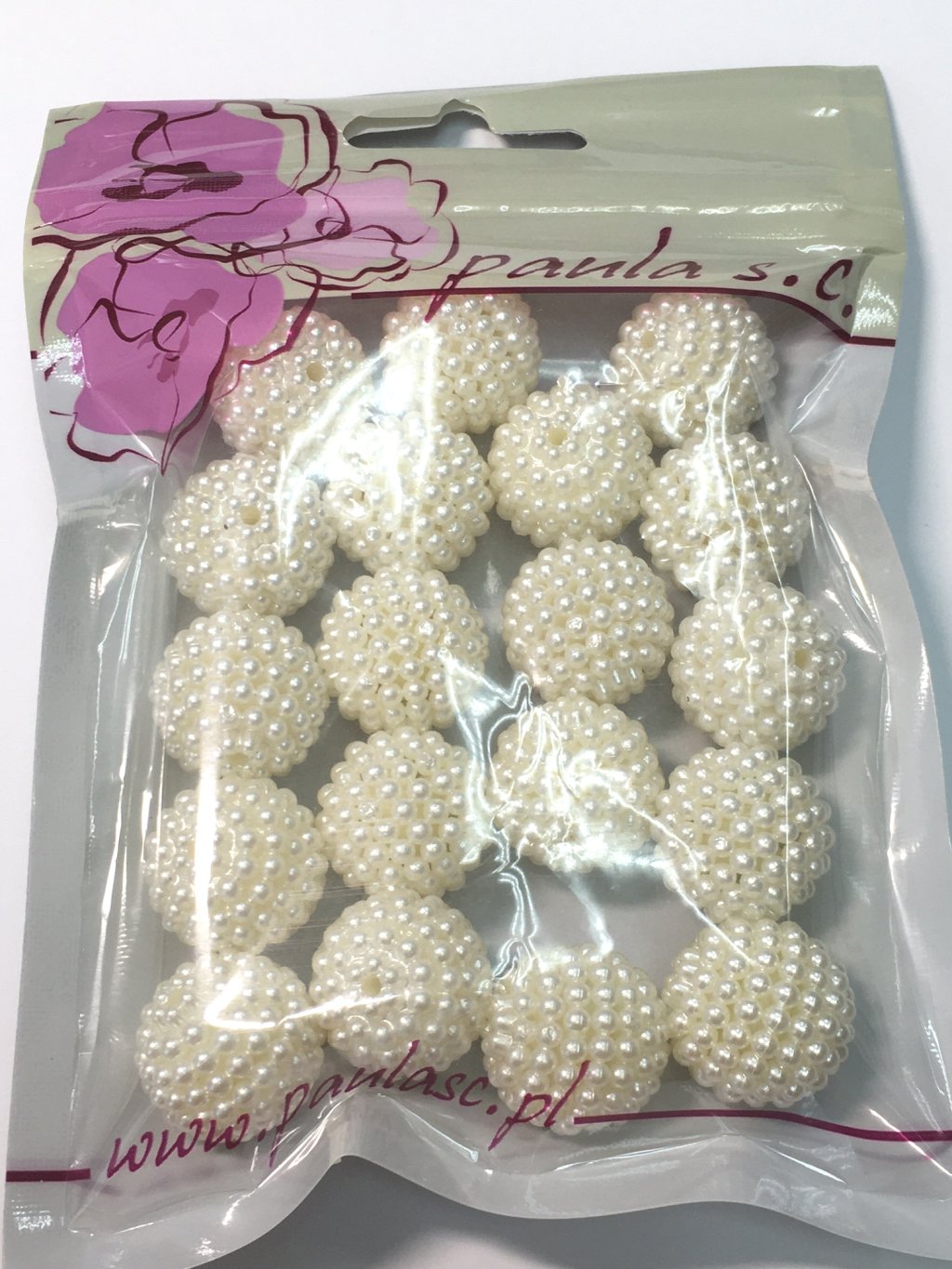 Korálky plast., 20 mm, OZDOBNÉ, hodně světle krémové, 1bal