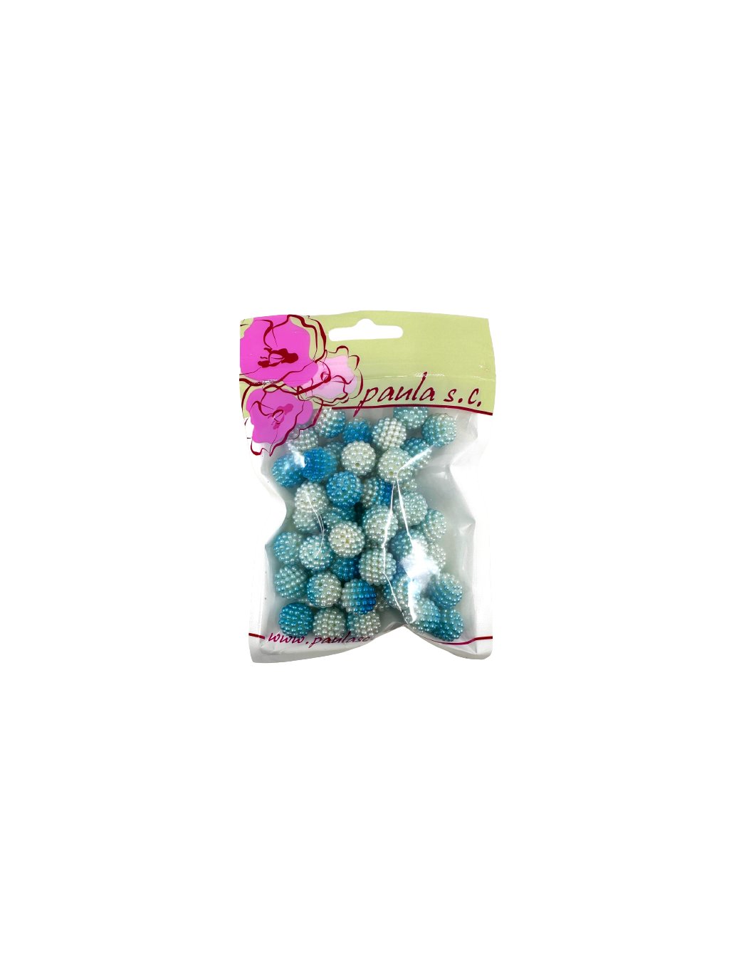 Korálky plast., modro-bílé, ozdobné, 14mm,cca 50 ks/bal.