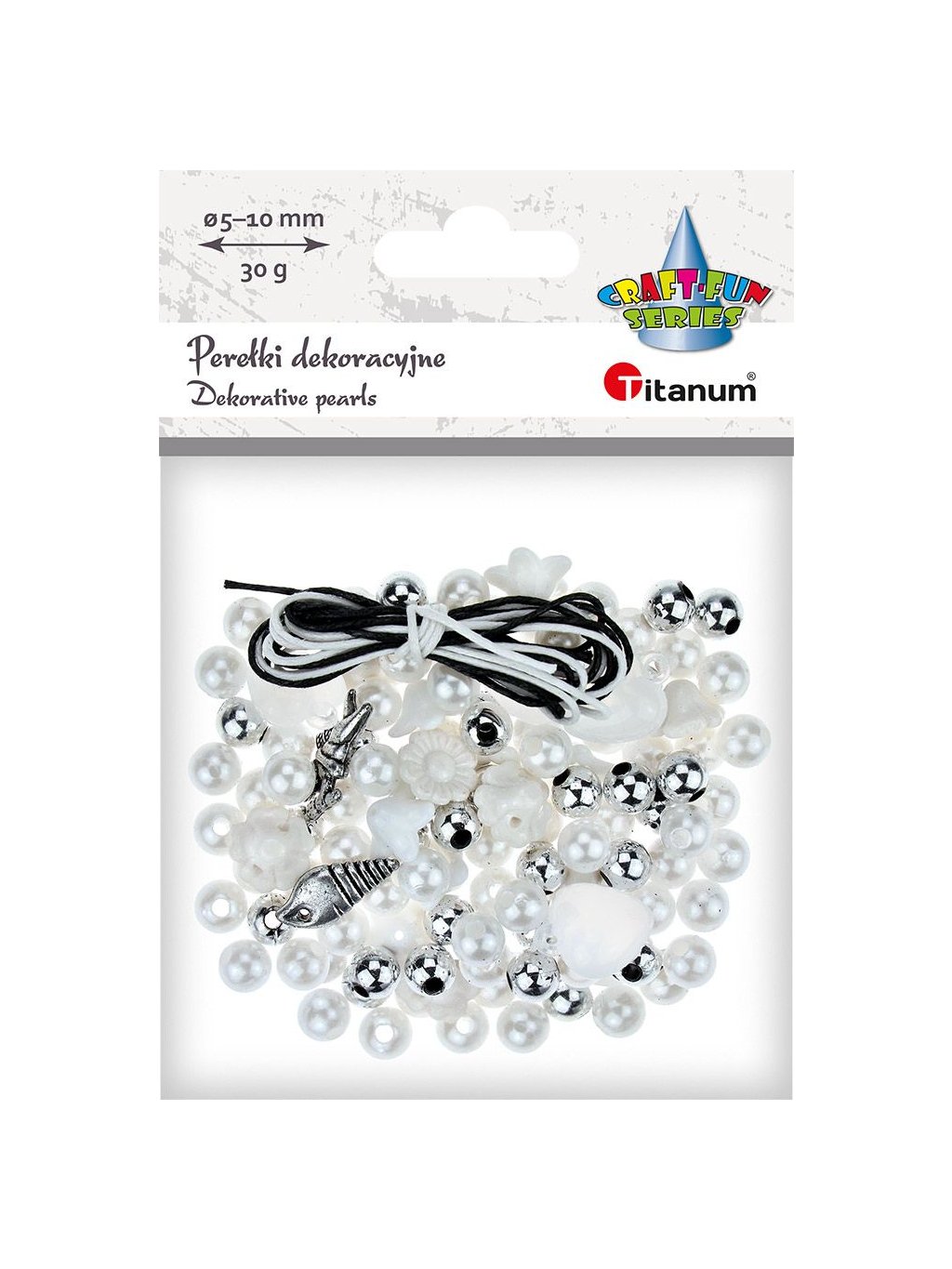 - Velikost korálku: bílé perly průměr 0,8 cm, stříbrné korálky průměr 0,8 cm