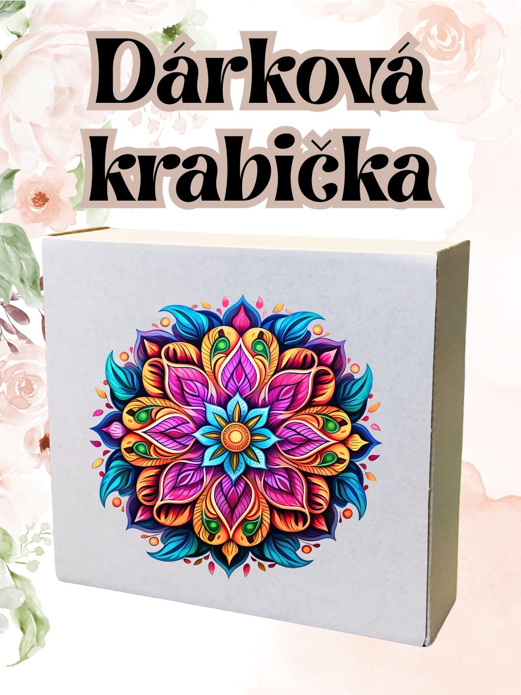 Krabička, s potiskem, MANDALA barevná, 17,3x16x5,3 cm, 1 ks