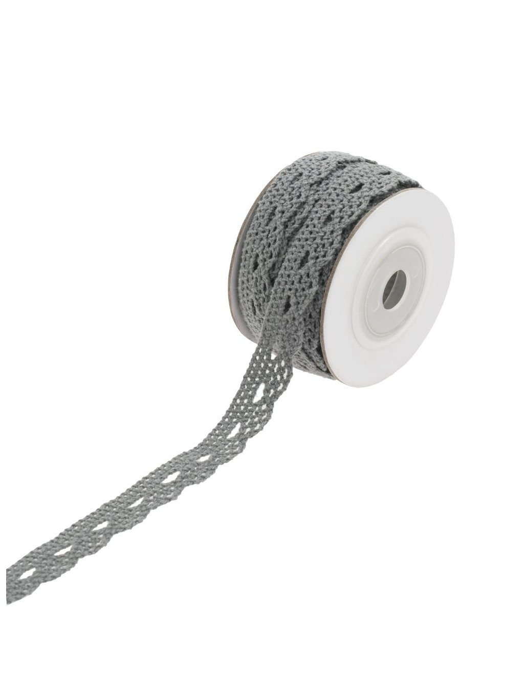 Dekorační krajková stuha v šedé barvě o délce 5 m.