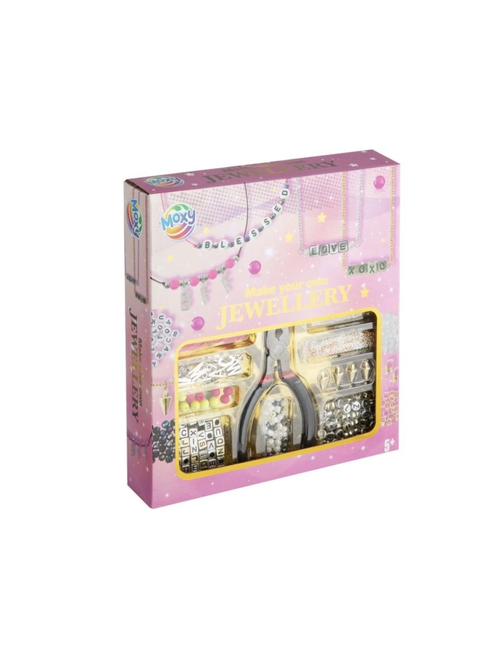 Kreativní sada na výrobu vlastních šperků. Obsahuje korálky, přívěsky, šňůrky i kleštičky. Ideální pro malé tvůrce od 5 let.