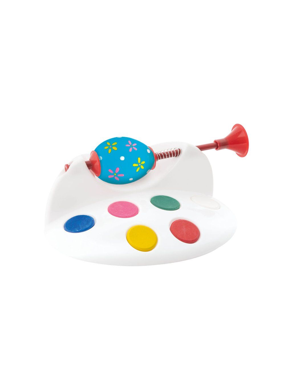 Stačí vložit vyfouknuté vajíčko do držáku, upevnit pomocí pružinového mechanismu a můžete začít tvořit. Sada obsahuje barvy a štětec pro jednoduché a pohodlné zdobení.