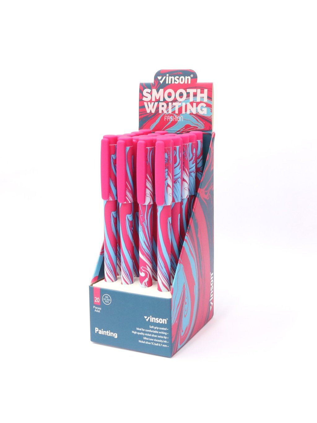 Elegantní kuličkové pero s jemným květinovým designem spojuje styl a funkčnost. Díky měkkému gumovému úchopu nabízí pohodlné psaní i při delším používání.
