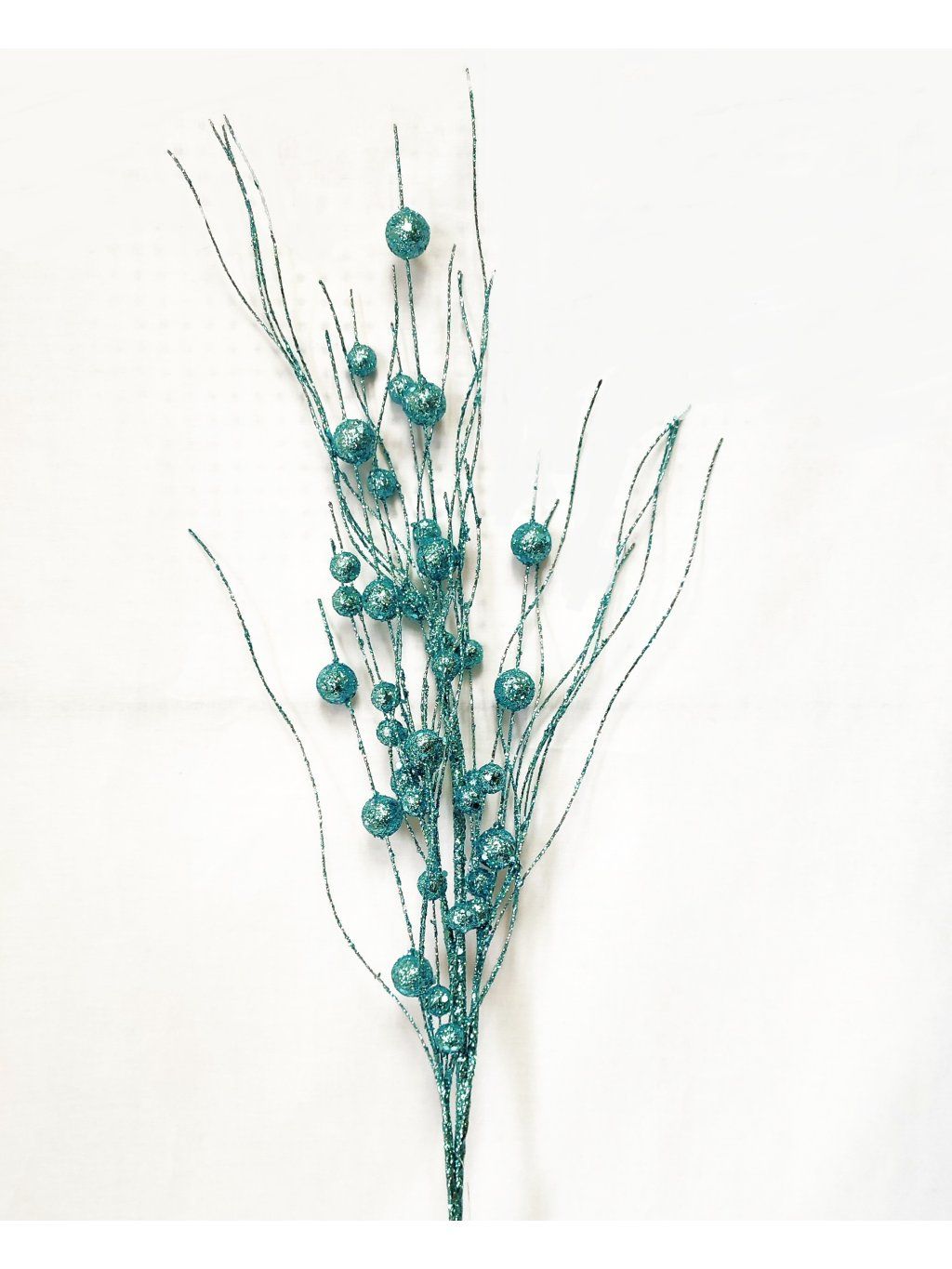 Květinový svazek, větvička, MODRÉ TŘPYTIVÉ KULIČKY, 70 cm, 1 kus