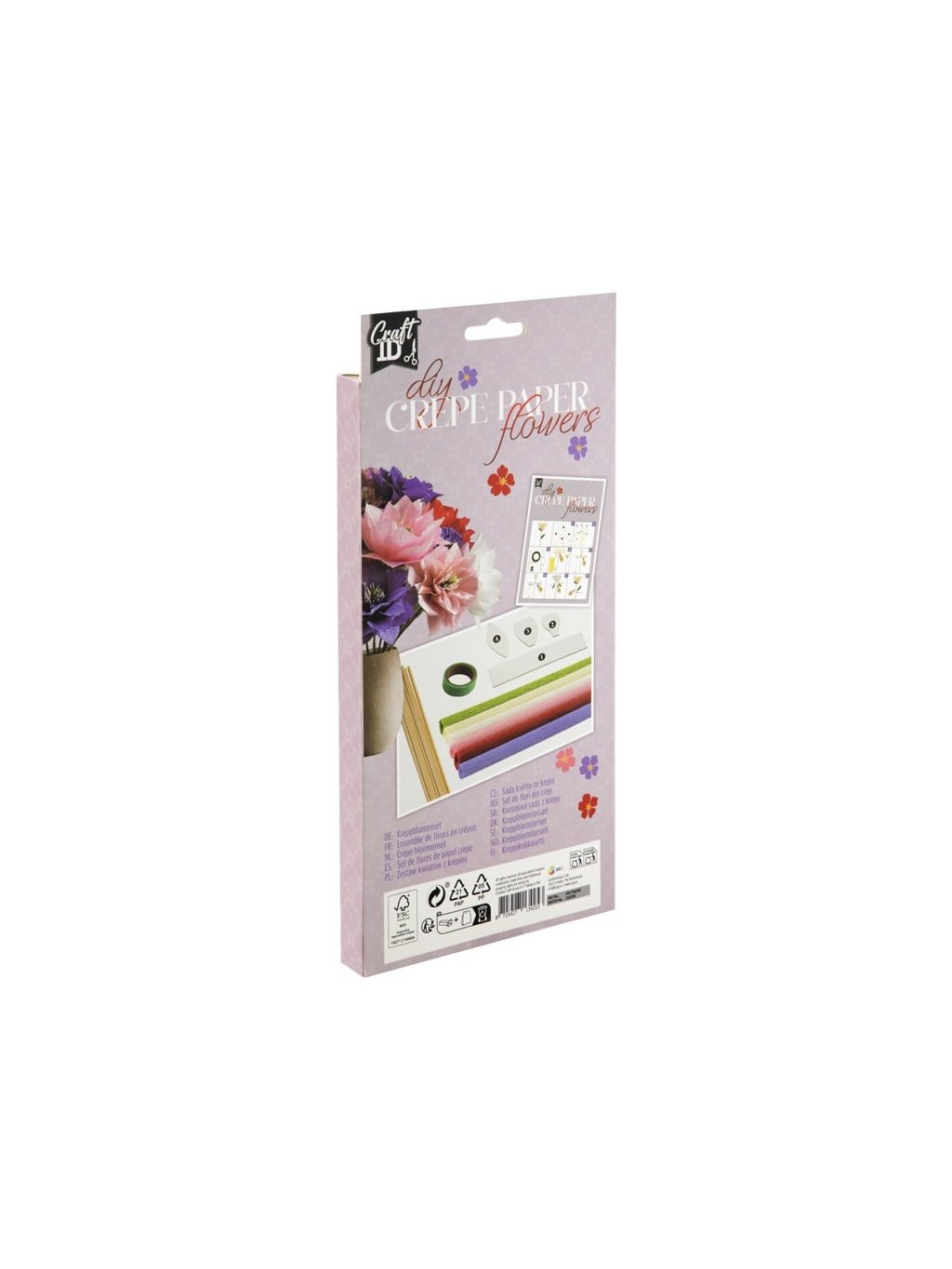 DIY sada na výrobu květin z krepového papíru. Obsahuje barevné papíry, stonky i návod. Vytvořte si originální dekoraci.