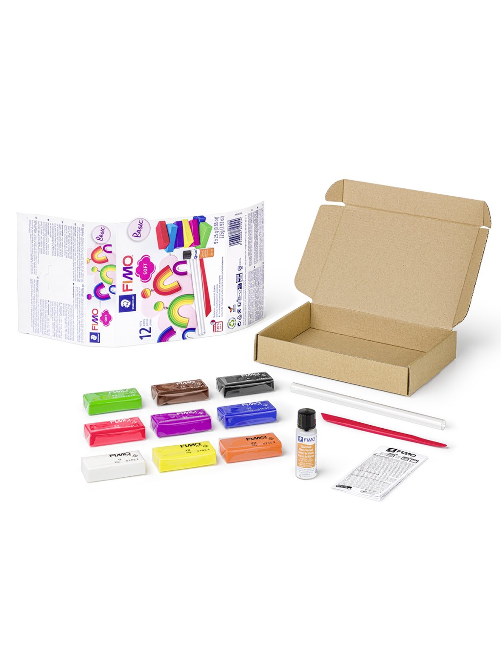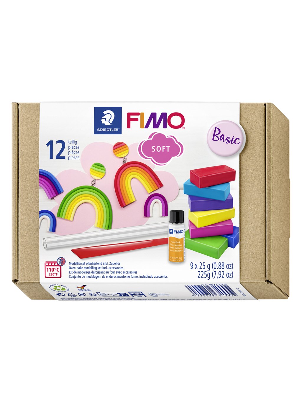 9 půlbloků FIMO Soft 25 g - bílá, žlutá, oranžová, červená, modrá, fialová, zelená, hnědá a černá
