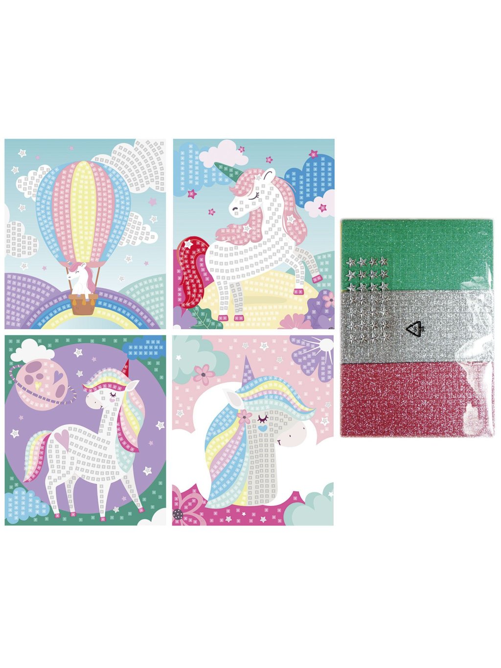 Mozaika - JEDNOROŽEC, glitter, 4 obrázky / balení