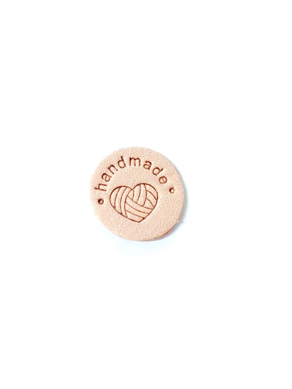 Nášivka, Handmade se srdíčkem, růžová, 25 mm, 1 kus