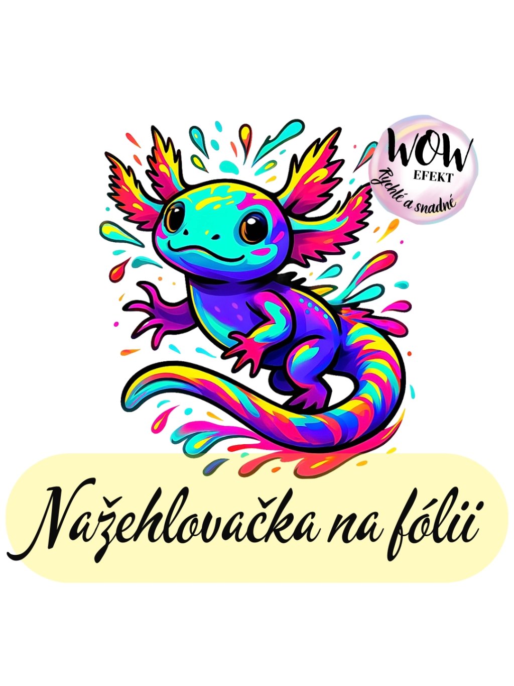 Nažehlovačka na fólii, AXOLOTL - VODNÍ DRÁČEK - cákající barvy, 1 kus
