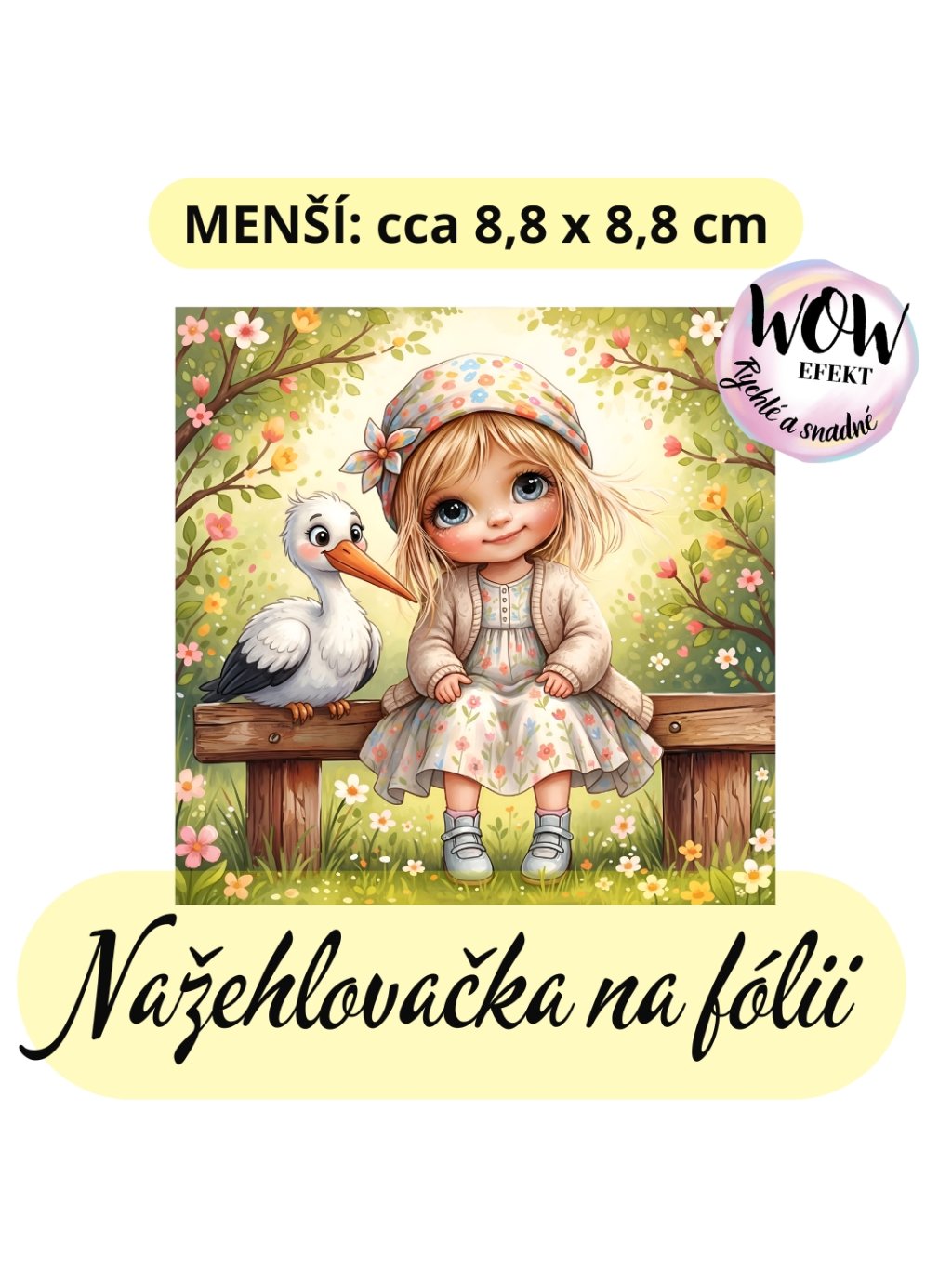 Nažehlovačka na fólii, HOLČIČKA s čápem - jarní- blond, 1 kus