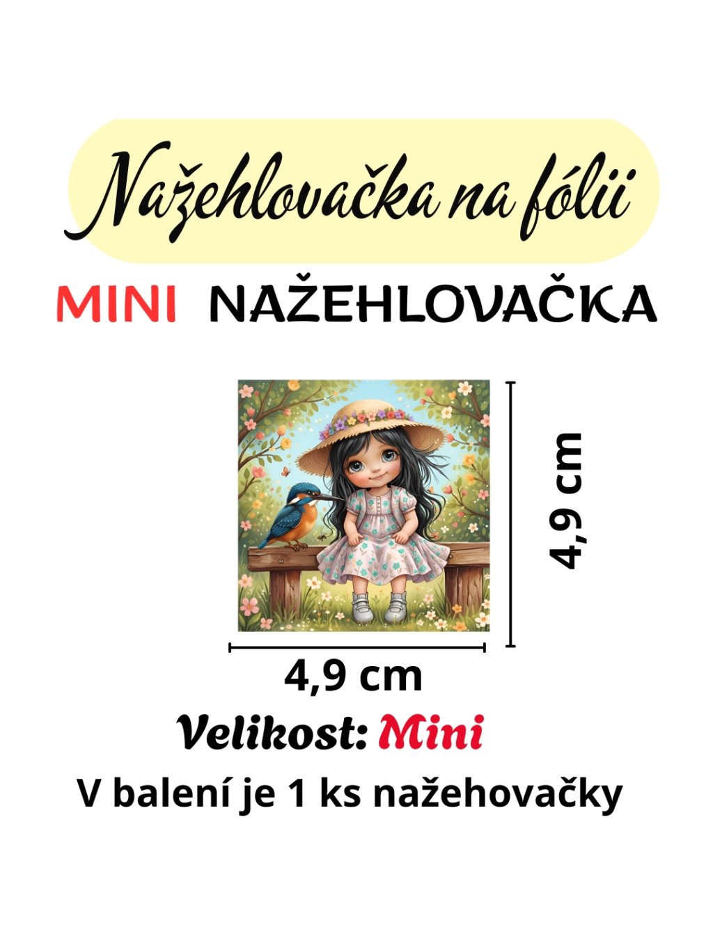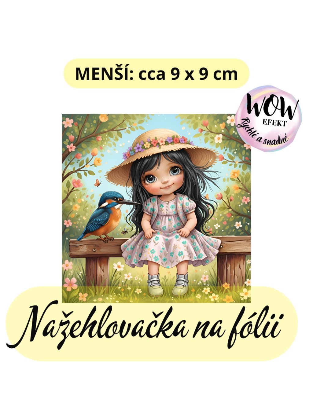 Nažehlovačka na fólii, HOLČIČKA s ptáčkem - letní- černovláska, 1 kus
