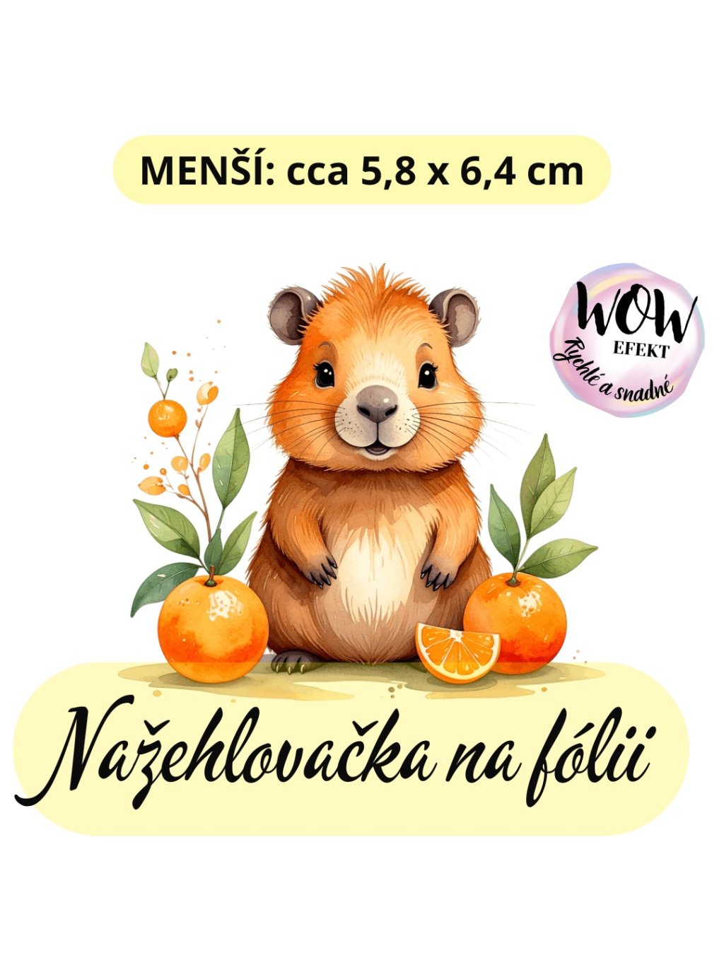 Nažehlovačka na fólii, KAPYBARA s pomeranči 2, 1 kus