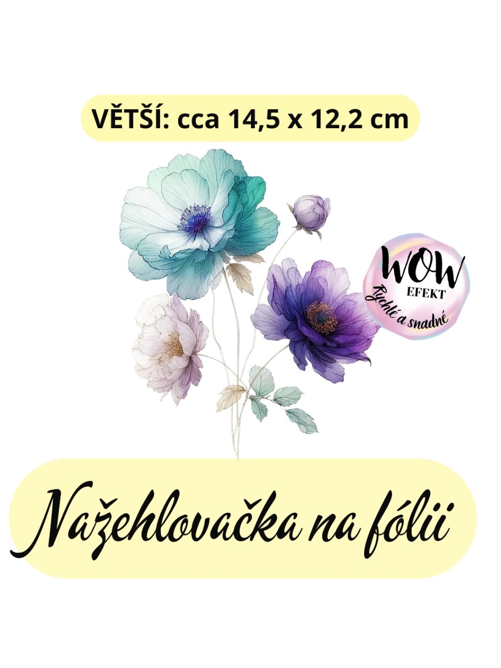 Nažehlovačka na fólii, LUČNÍ KVĚTINY modro fialové, 1 kus