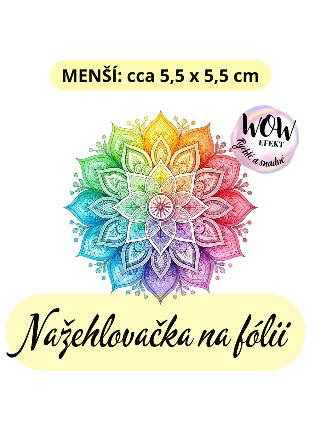 Nažehlovačka na fólii, MANDALA duhové barvy 1, 1 kus