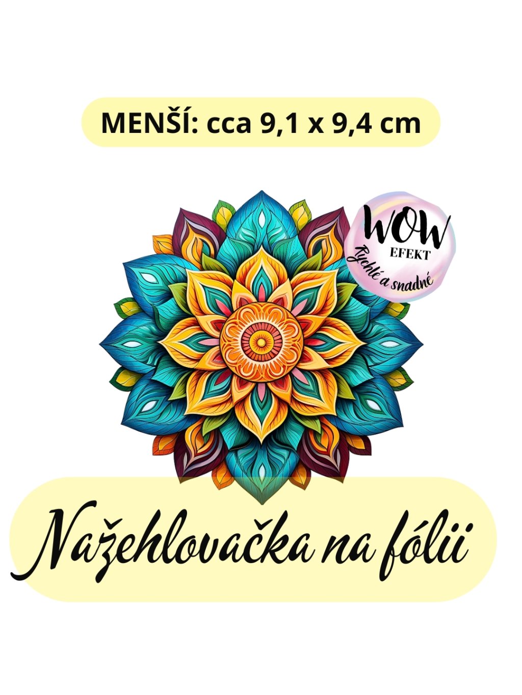 Nažehlovačka na fólii, MANDALA modro žluto fialová barva, 1 kus