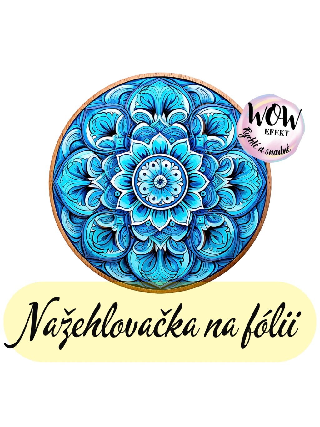 Nažehlovačka na fólii, MANDALA světle modrá v kruhu, 1 kus