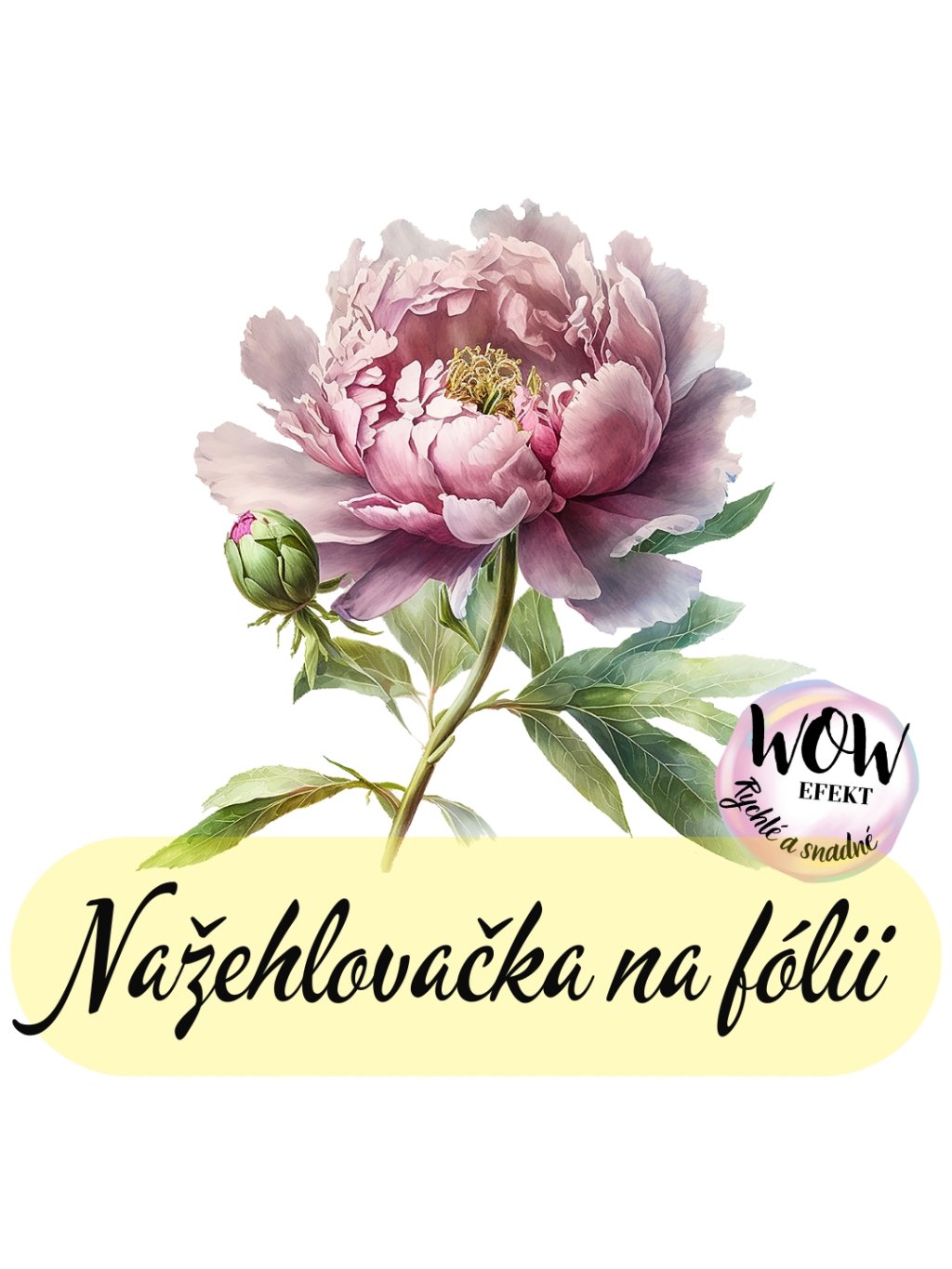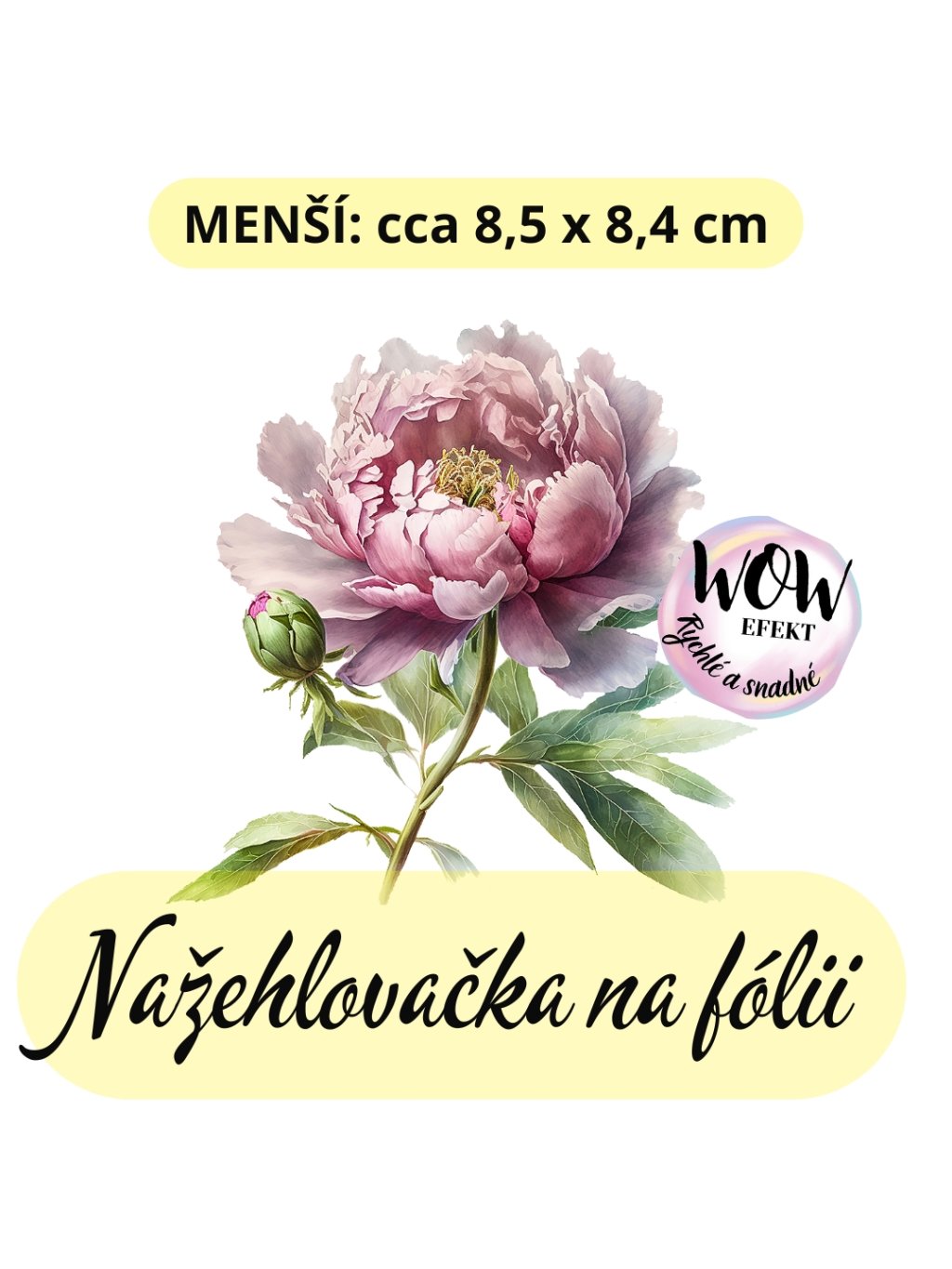 Nažehlovačka na fólii, PIVOŇKA S POUPĚTEM světle růžová, 1 kus