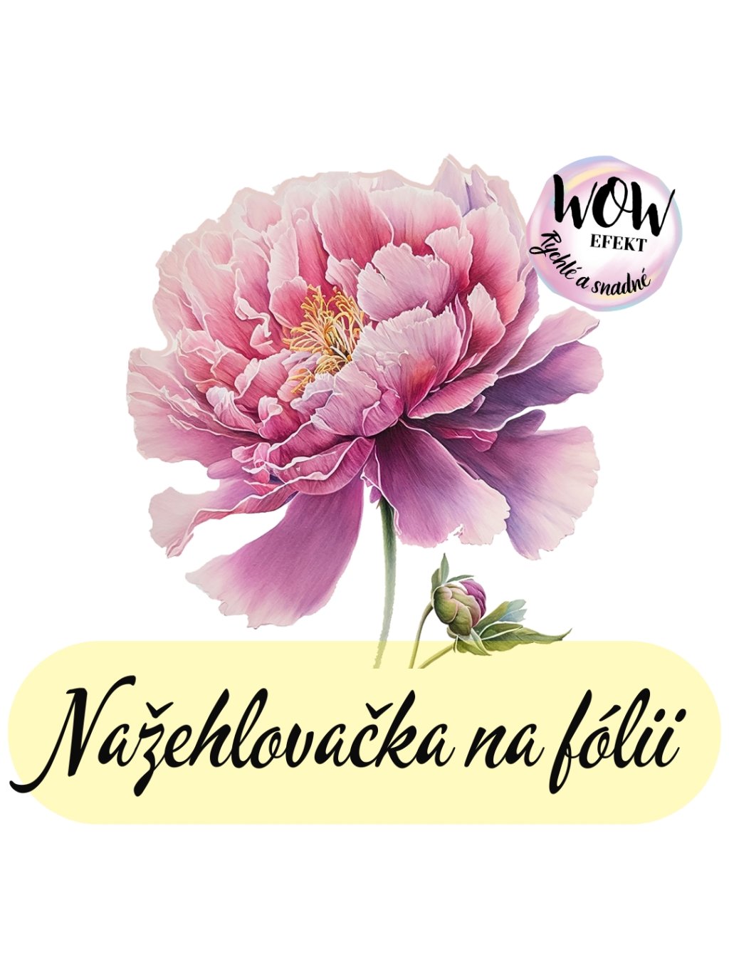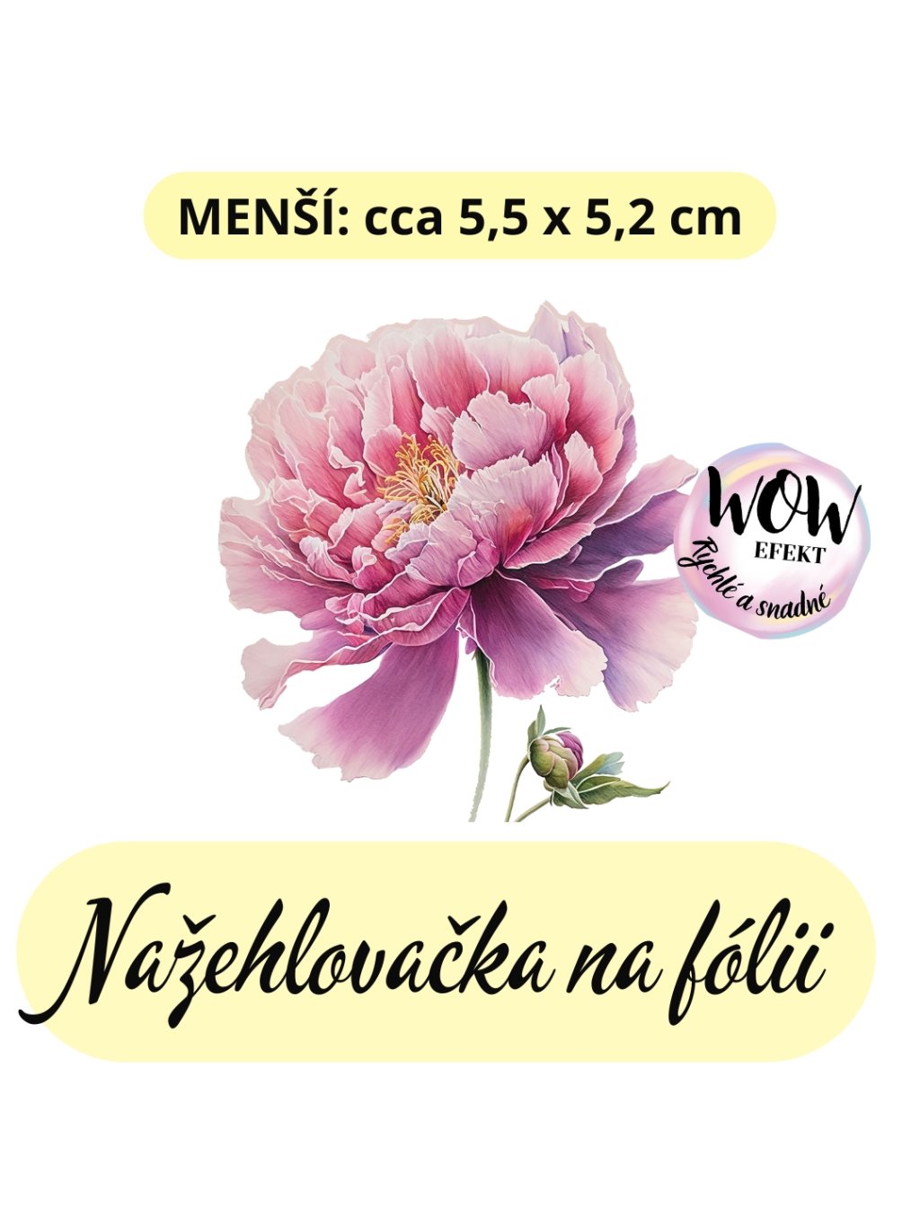 Nažehlovačka na fólii, PIVOŇKA tmavší růžová s poupátkem, 1 kus