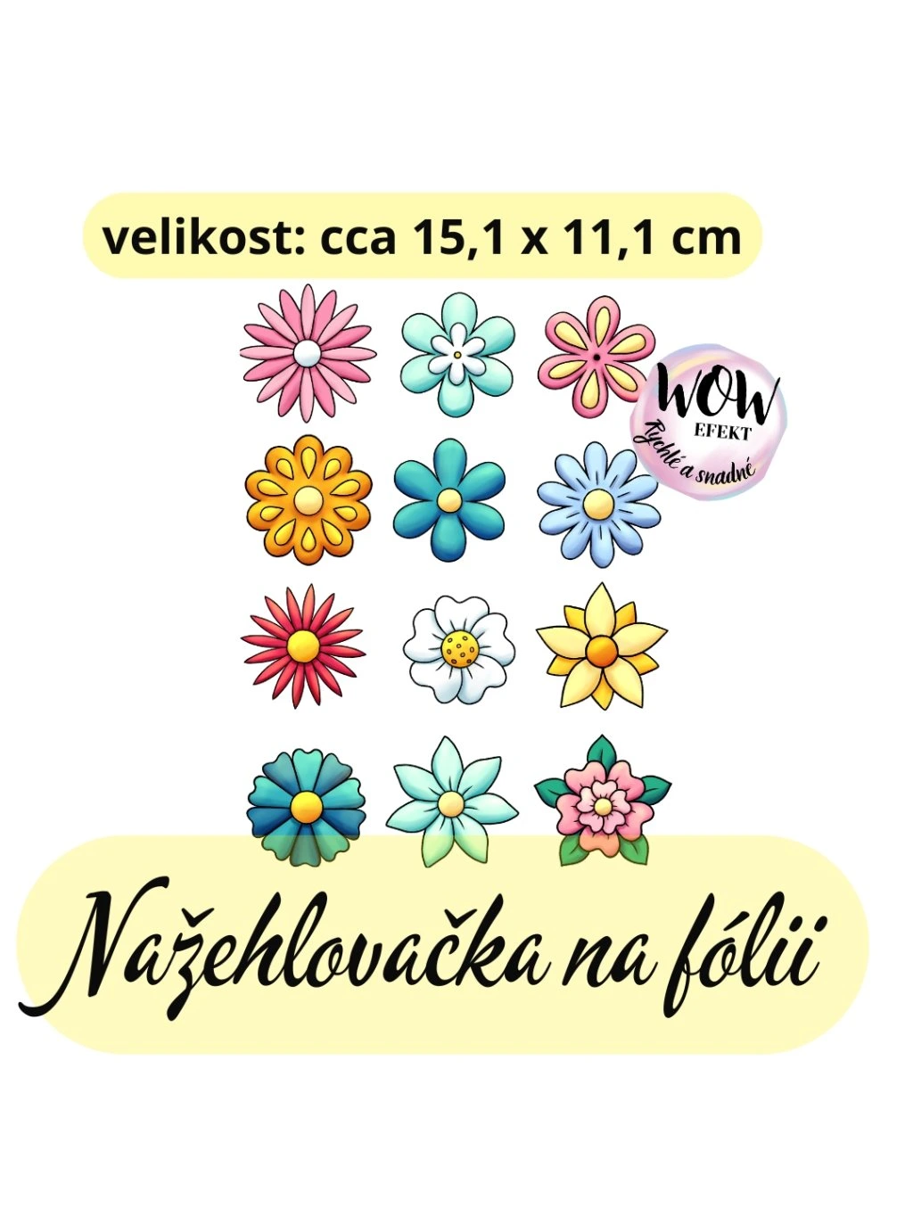 Nažehlovačka na fólii, KVĚTY MIX 1, 15,1 x 11,1 cm, 1 kus