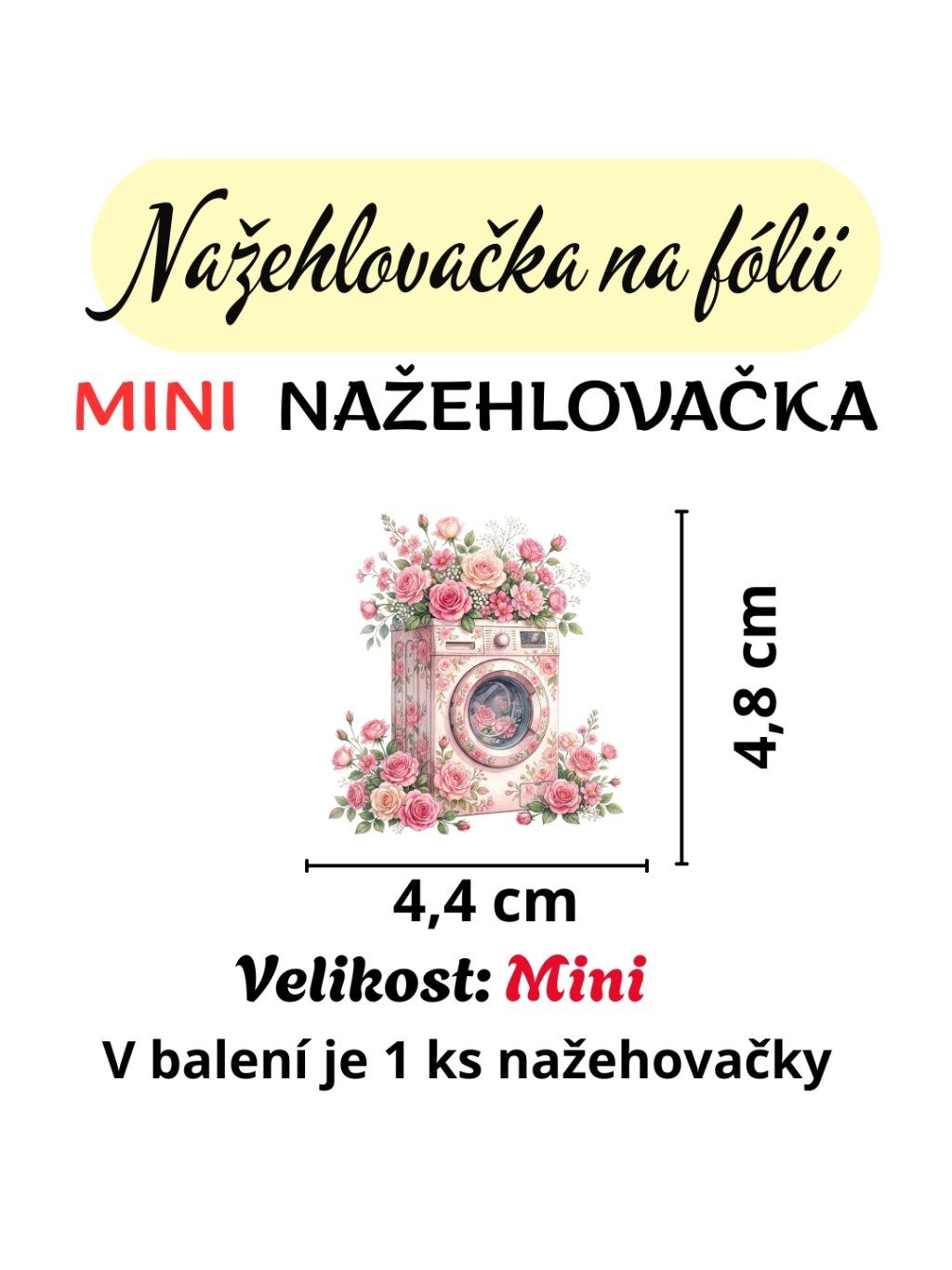 Nažehlovačka na fólii, PRAČKA S RŮŽEMI, 1 kus