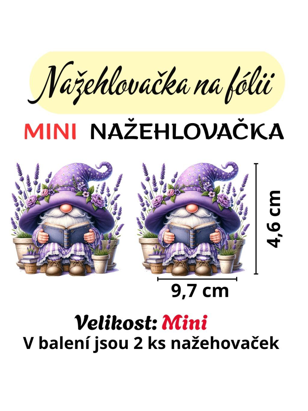 - MINI velikost: 4,6 x 9,7 cm ( 2 nažehlovačky na archu)