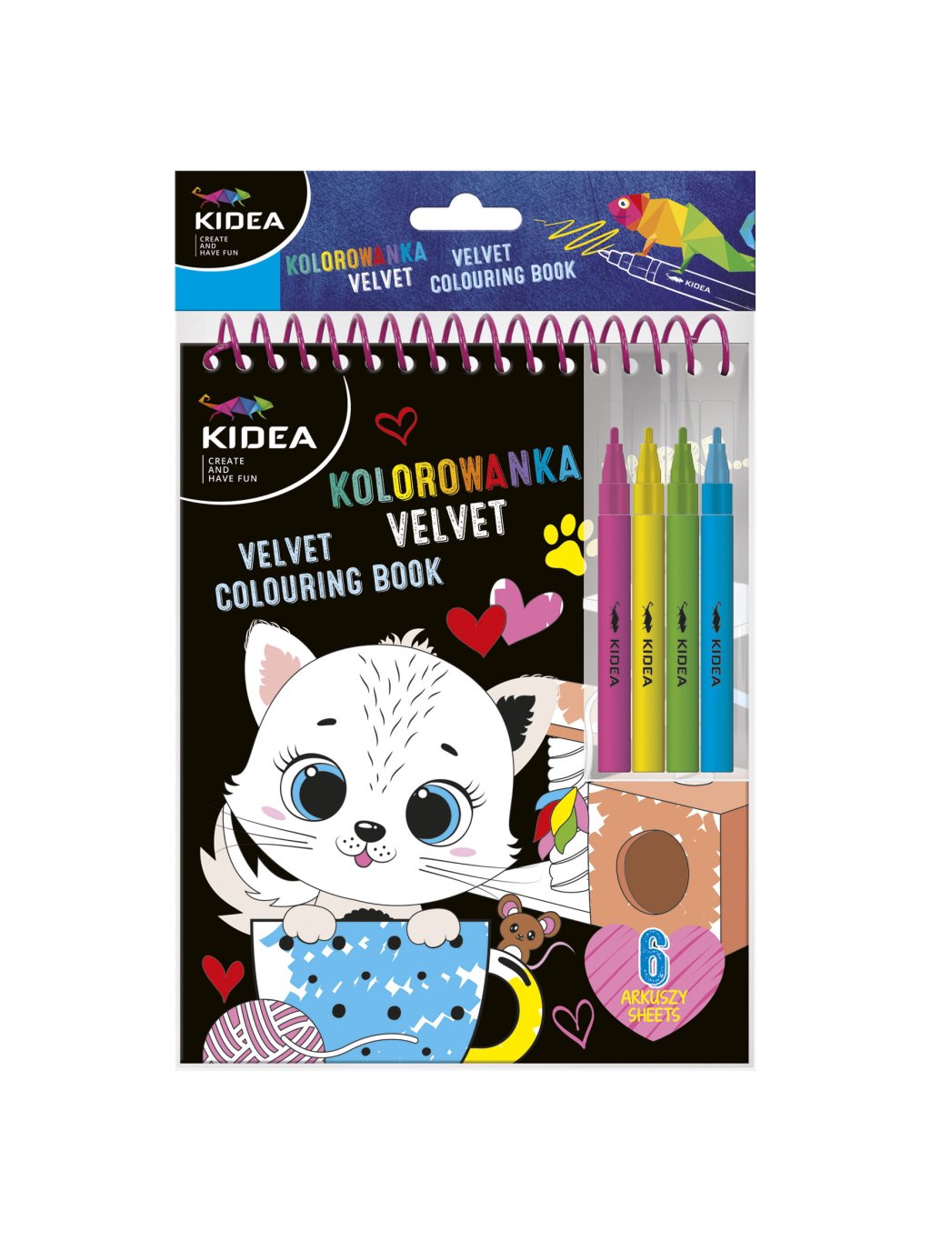 Sada se skládá ze 6 omalovánek formátu A5 na sametovém sametovém podkladu a 4 fixů. Omalovánka má sametové obrysy, díky kterým si dítě snáze obrázek vybarví, aniž by přetáhlo.