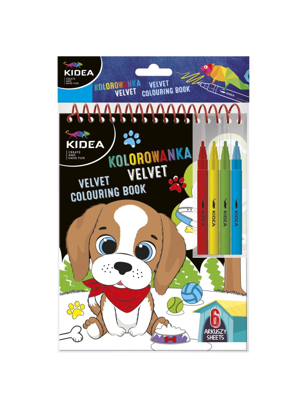 Sada se skládá ze 6 omalovánek formátu A5 na sametovém sametovém podkladu a 4 fixů. Omalovánka má sametové obrysy, díky kterým si dítě snáze obrázek vybarví, aniž by překročilo čáru.