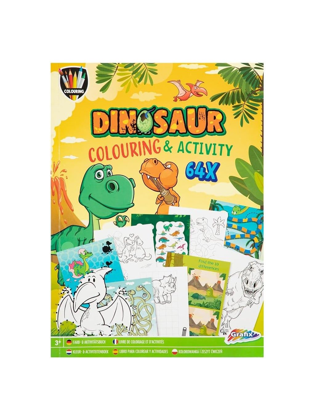 Kreativní kniha Dinosaur Colouring & Activity přináší 64 stran plných omalovánek, her a zábavných úkolů s oblíbenými dinosaury. Děti si užijí vybarvování obrázků i řešení jednoduchých aktivit, které podporují rozvoj jejich dovedností.