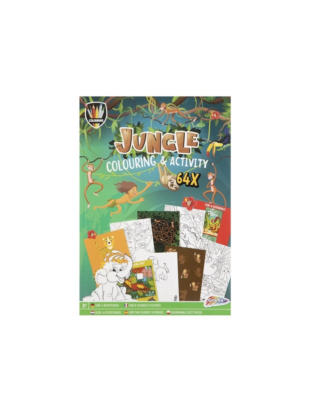 Jungle Colouring & Activity – 64 stran omalovánek, bludišť a zábavných úkolů s motivem džungle. Kreativní zábava pro děti od 3 let.