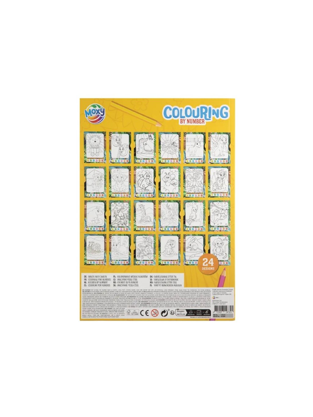 Omalovánky podle čísel A4 – 24 vzorů + 6 pastelek
