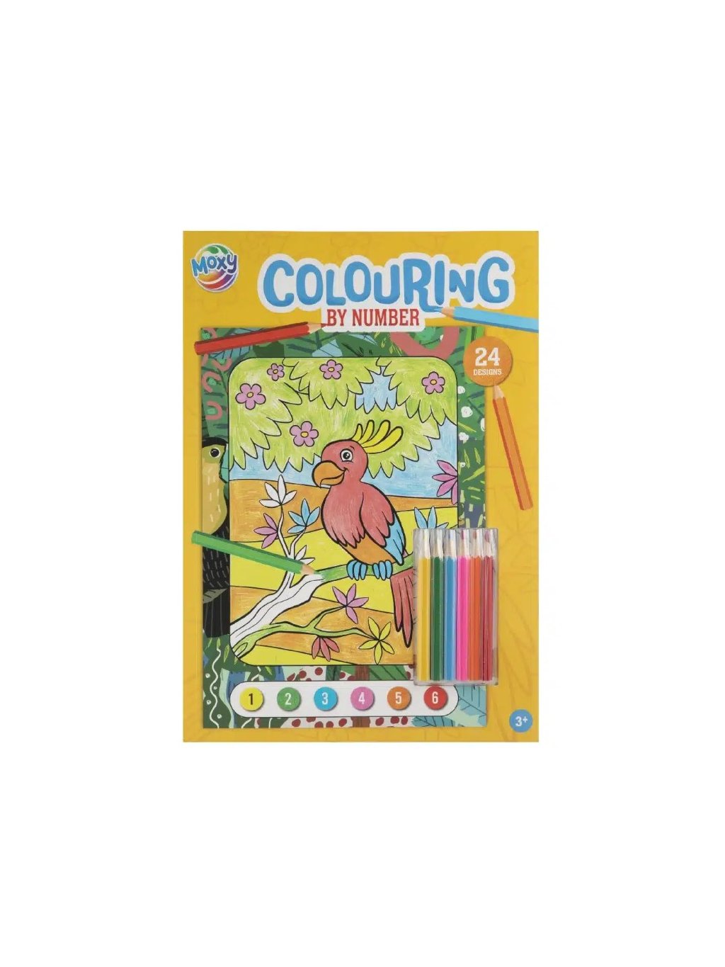Vybarvovací sešit A4 podle čísel obsahuje 24 obrázků a 6 barevných tužek. Zábavné a kreativní tvoření pro děti od 3 let.