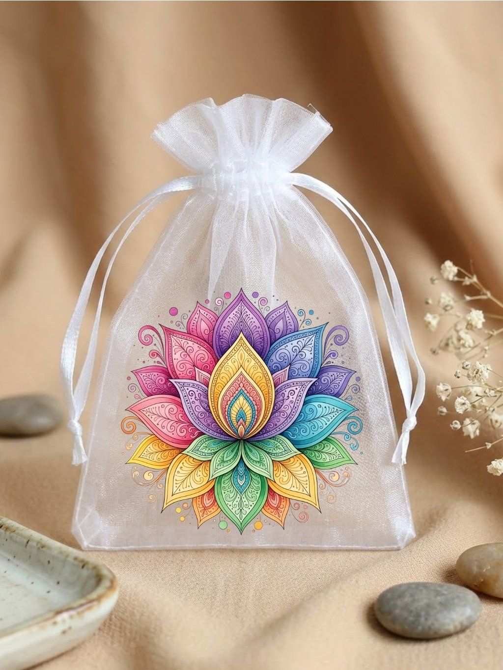 Organza dárkový pytlíček, mandala , 7,7 × 10 cm – bílý