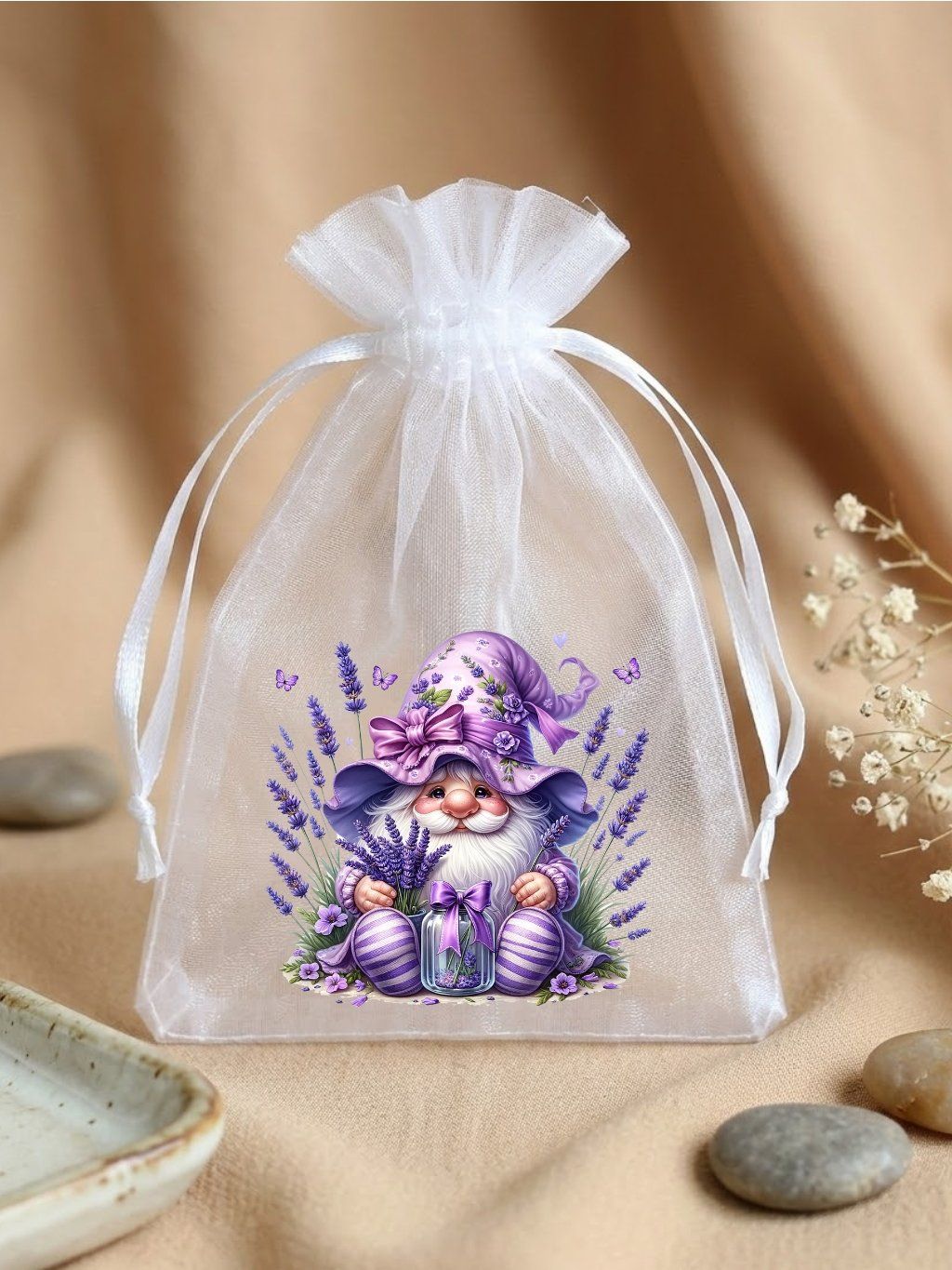 Organza dárkový pytlíček, Skřítek-levandule, 7,7 × 10 cm – bílý
