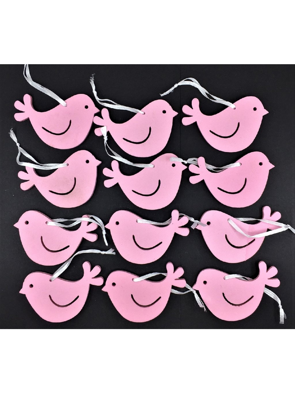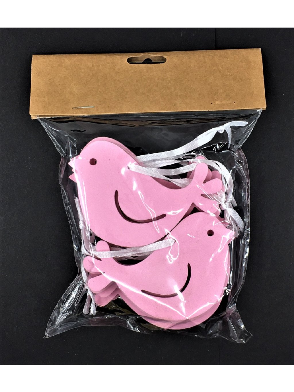 Pěnové dekorace - PTÁČCI, 6 cm, růžový, 12 ks/bal.