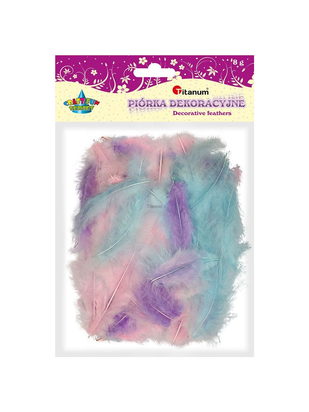 Peří - blankytně modrá, starorůžová a fialová, 8g/bal.
