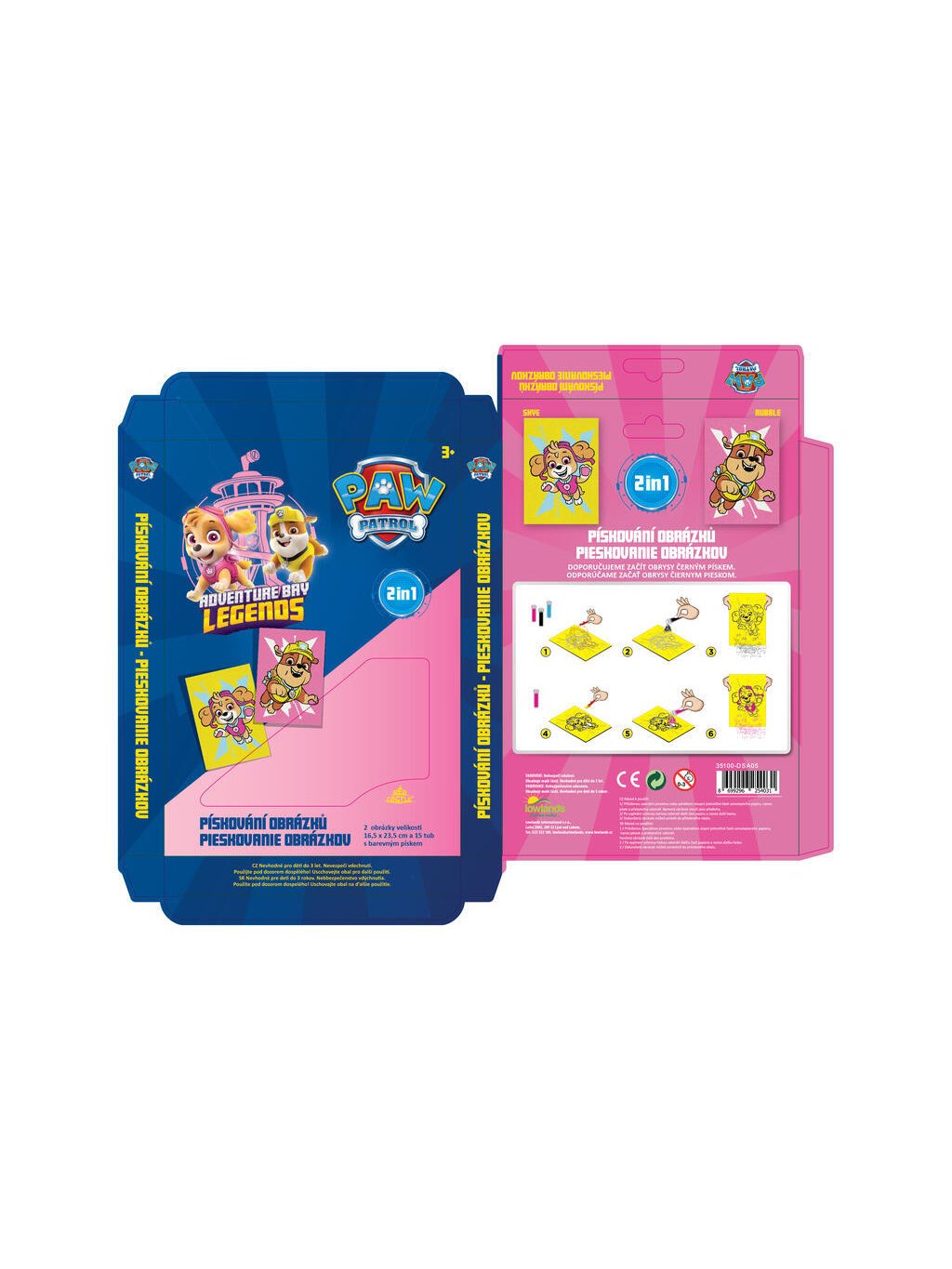 Balení obsahuje: 2 obrázky k vypískování, speciální pinzetu, 15 tub s barevným pískem a 2 obaly na vytvořené obrázky.