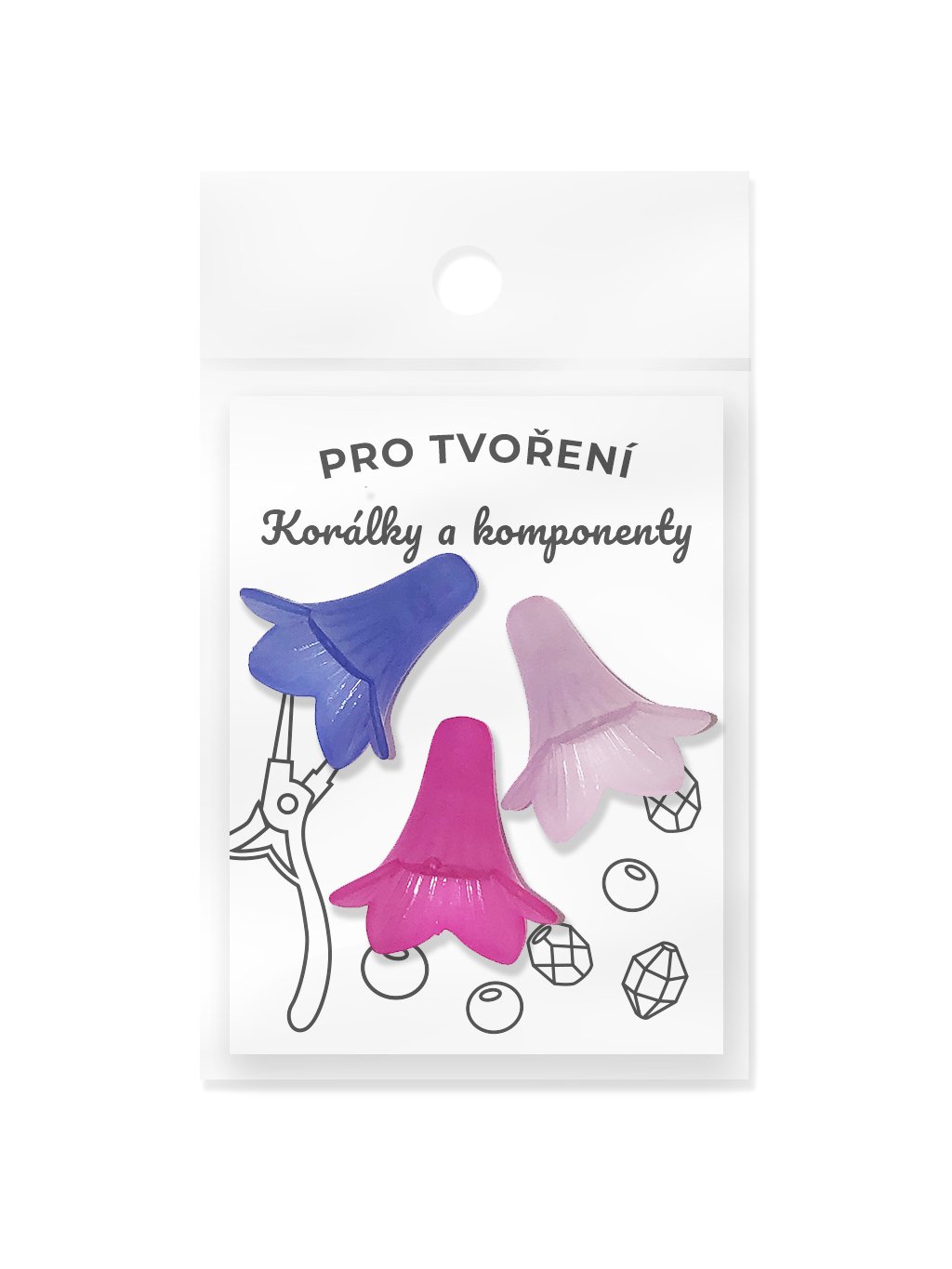 Plastový zvoneček matný, barva mix, 22x22 mm, balení 3 ks