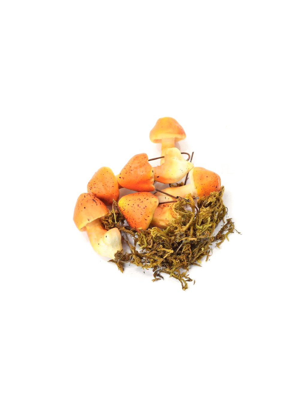 Malé houbičky, které jsou prorostlé mechem, krásná podzimní dekorace na tvoření.