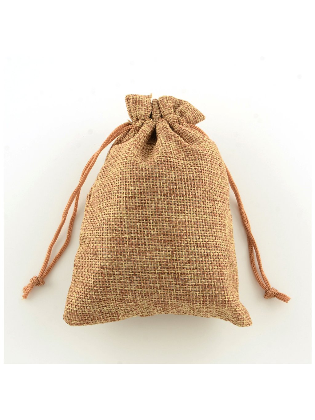 Polyesterový pytlík s imitací jutoviny, 18 × 13 cm – HNĚDÝ, se stahovací šňůrkou, 1kus