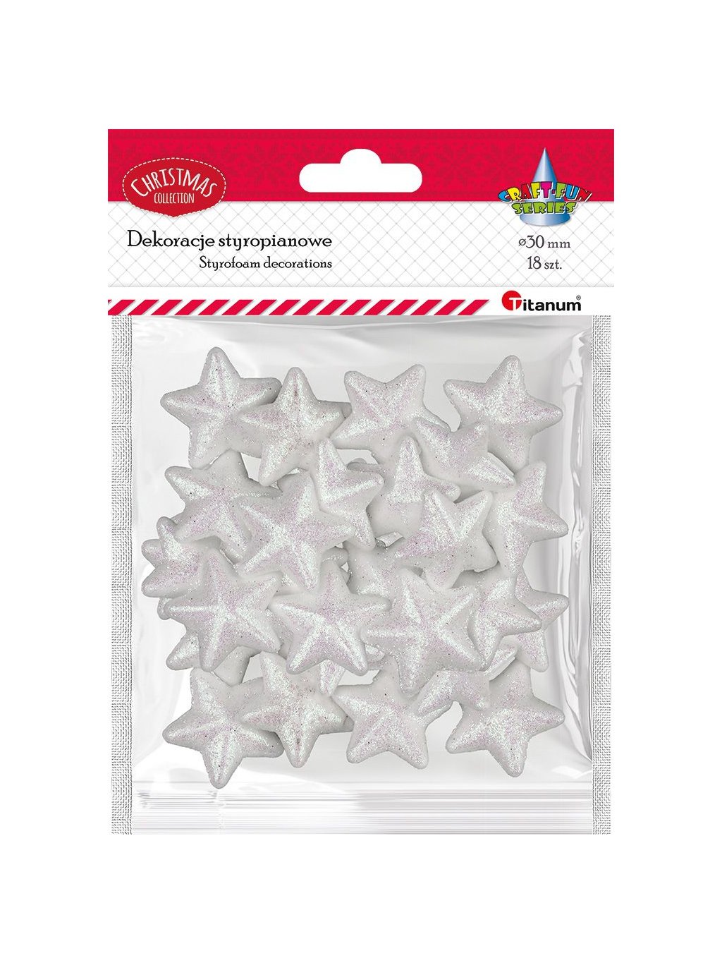 Polystyrenová dekorace, hvězdy, BÍLÉ, 30x28mm, 18ks/bal.