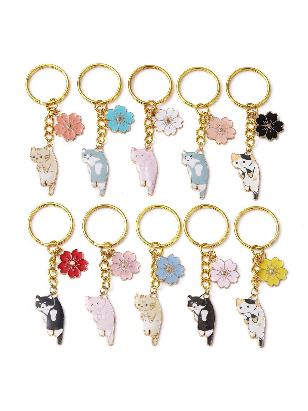 Přívěsek na klíče s kočkou a sakurou. Přívěšek si můžete zavěsit na kabelku, tašku, batoh a další.