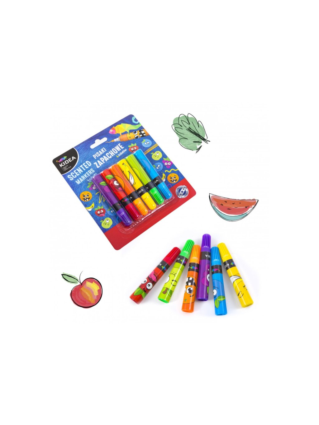 Balení voňavých fixů. Při psaní voní úžasně Jejich sladké ovocné vůně jsou: pomeranč, jablko, jahoda, banán, borůvky a hroznové víno, Díky jejich jedinečnému tvaru dokonale padnou do ruky, Díky elegantním rozměrům se vejdou do každého penálku, Kromě toho jsou nerozbitné a mají velmi odolný hrot, Mají velmi šťavnaté barvy, které dokonale pokrývají povrch, Pera jsou balena v krásném blistru. Počet barev / kusů: 6