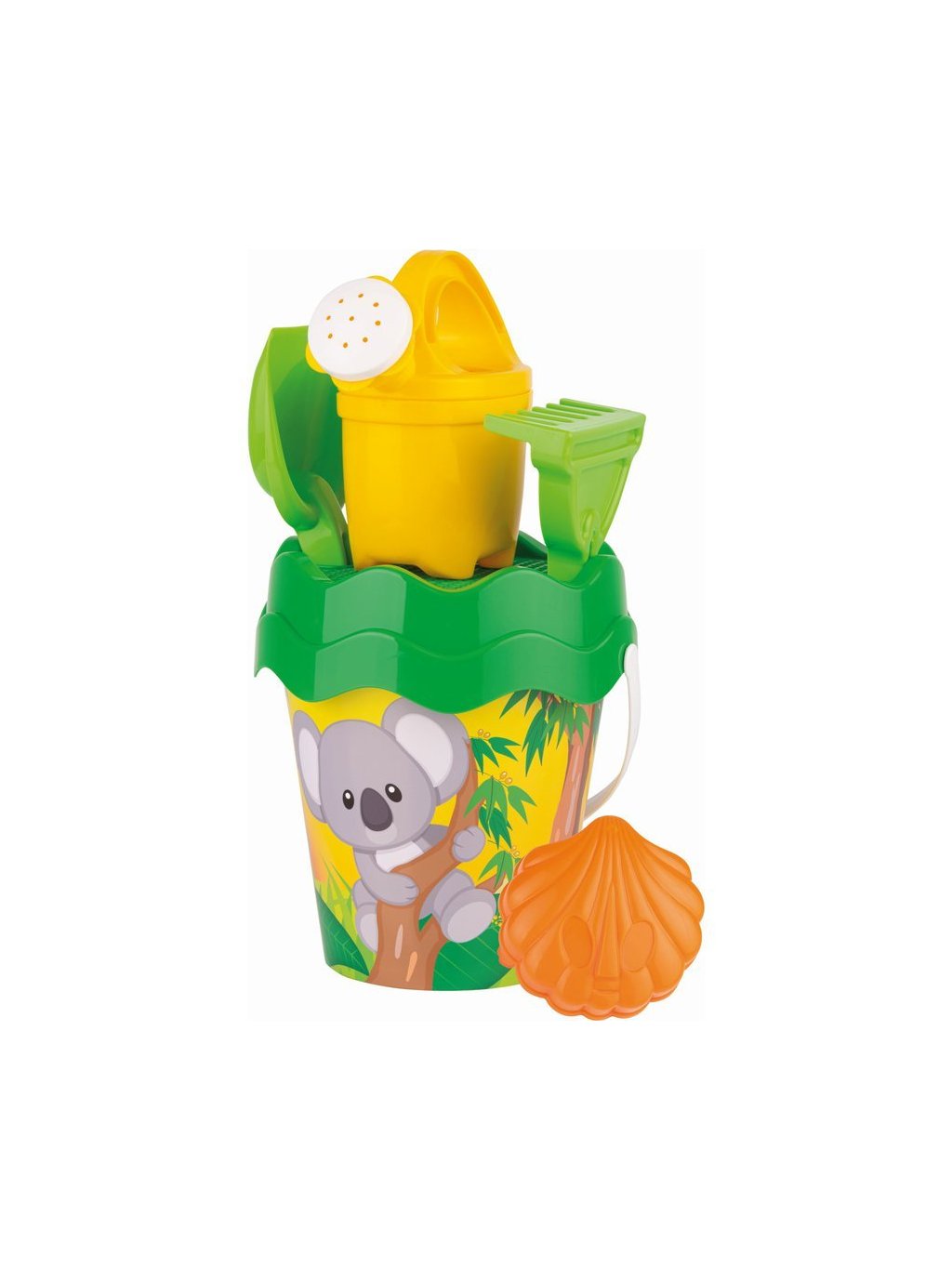 - Obsahuje: Kyblík, konvičku 0,5 l, sítko, lopatku, hrabičky a tvořítko ve tvaru mušle.