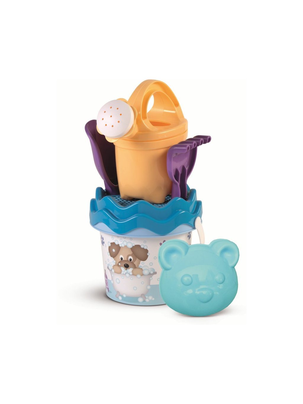 - Obsahuje: Kyblík, konvičku 0,5 l, sítko, lopatku, hrabičky a tvořítko ve tvaru psí hlavy.