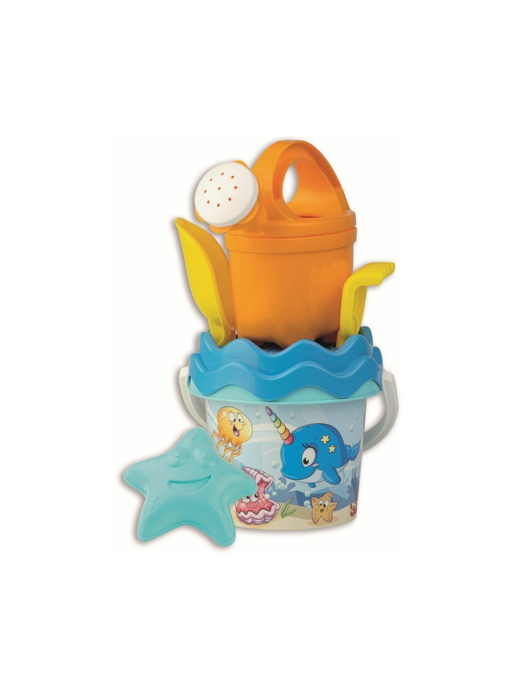 - Obsahuje: Kyblík, konvičku 0,5 l, sítko, lopatku, hrabičky a tvořítko ve tvaru mořské hvězdice