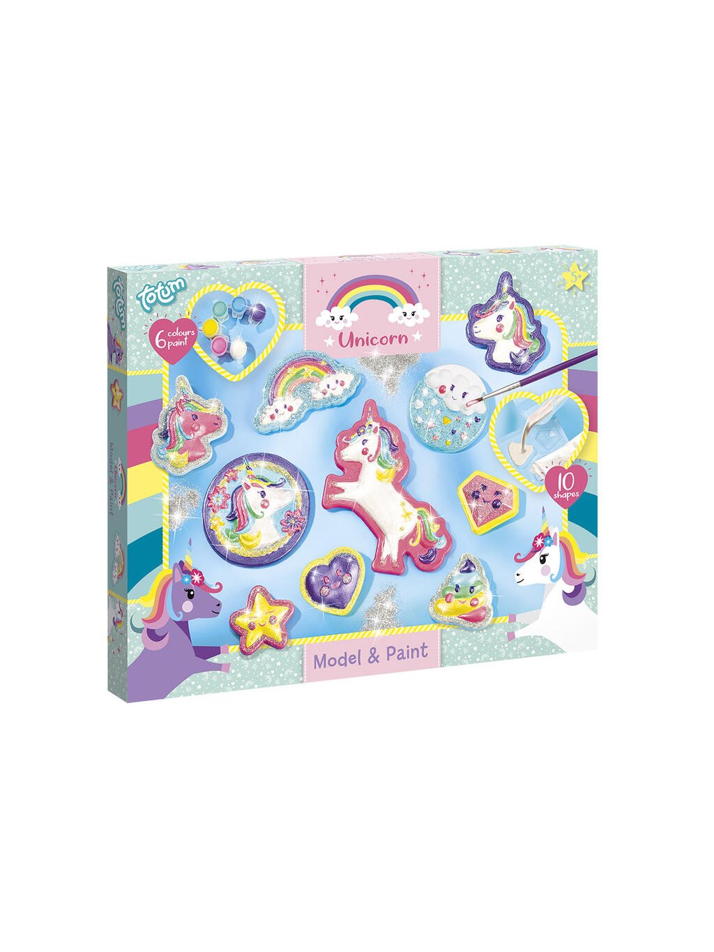 - Obsahuje: formu, sádru, 6 barev k vymalování, štětec, odměrku, třpytivý prášek a návod.