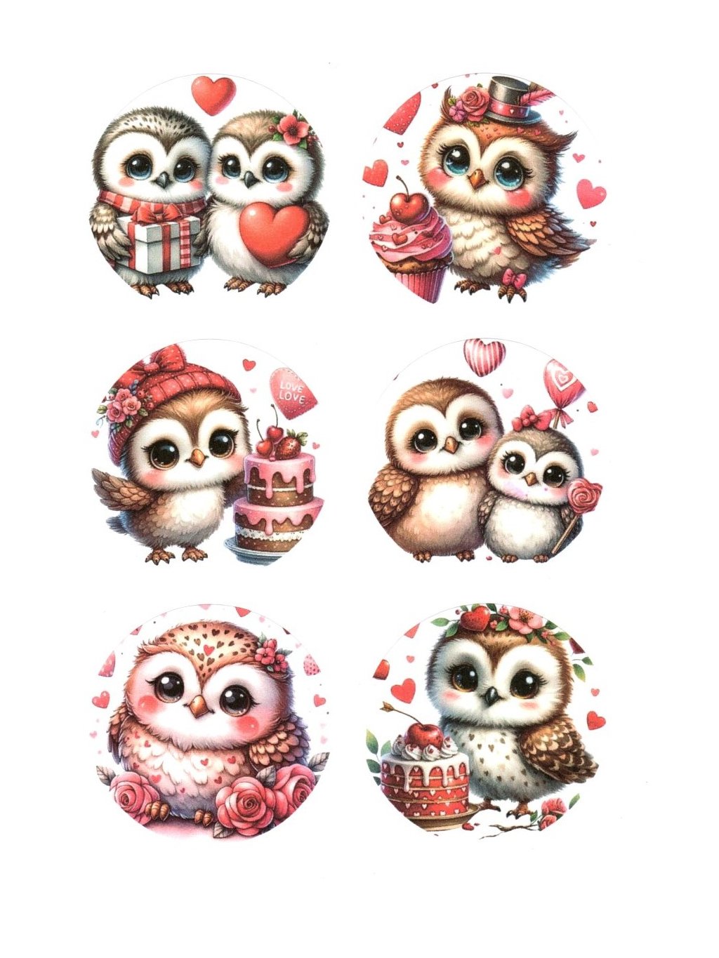 Samolepky, kulaté, ZAMILOVANÉ SOVIČKY, 4,5 cm, 6ks/arch