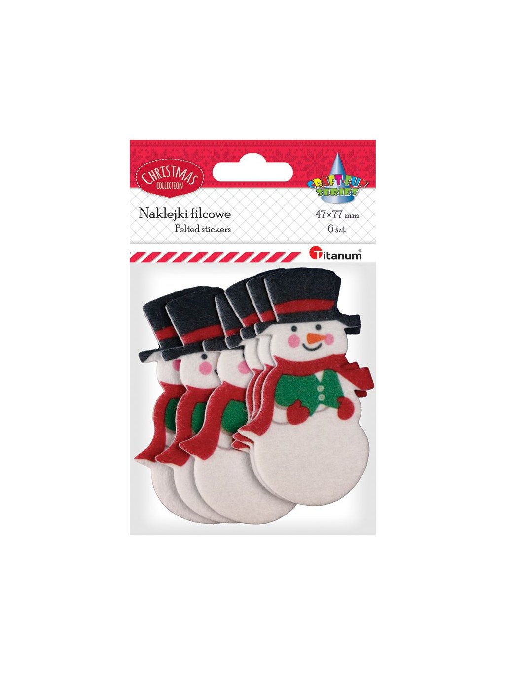 Samolepky, plstěné, dekorační, sněhuláci, 4.7x7.7cm, 6ks/bal